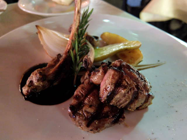 agnelloallagriglia(ラムチョップ 骨付き最高級仔羊肉(240g)のグリル、マイルドなバルサミコソース仕立て、楽しい野菜グリル添)