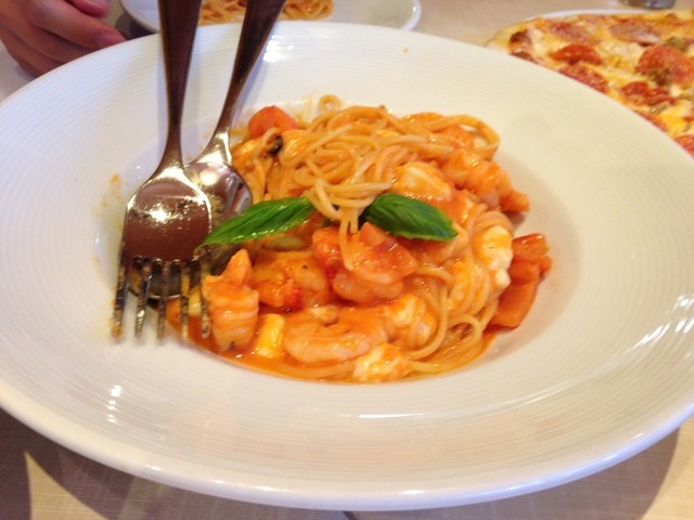 スパゲティには海老を追加。
