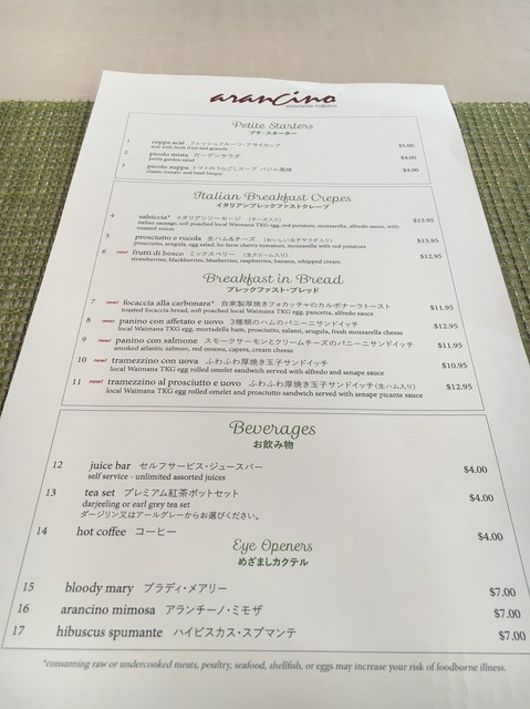 ごそごそ支度をして、向かうのはマリオットホテルの1Fに位置する「アランチーノ・ディマーレ」
