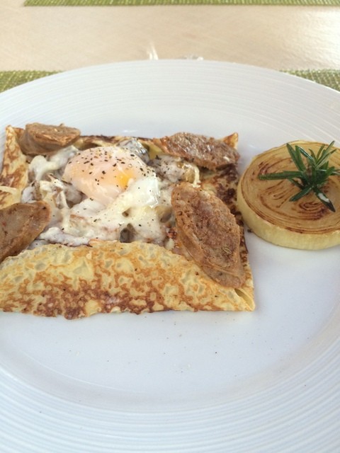 ワイキキの有名イタリアンの爽やかなテラス席でクレープモーニング