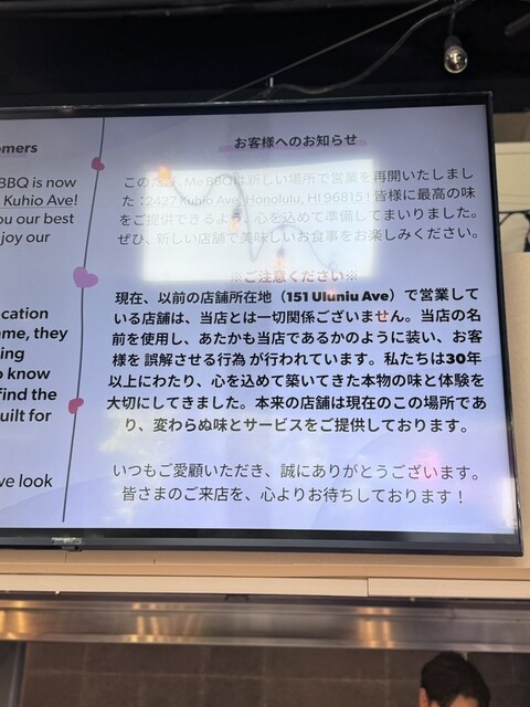 「Me Bar-B-Que(ミー バーベキュー)」は、ワイキキの中心で長年愛されるローカルスタイルのプレートランチ店。店先から漂う香ばしいバーベキューの匂いに誘われ、地元の人から観光客まで絶えず賑わっています。豊富なメニューの中でも人気は、カルビやチキンなどを豪快に盛り付けたプレート。香ばしく焼かれた肉は甘辛いタレがしっかり染み込み、白ごはんとの相性が抜群です。ボリュームもたっぷりで、ハワイらしい満足感のある一皿。付け合わせのマカロニサラダもクリーミーで美味しく、全体のバランスが取れています。店はカジュアルで気取らず、テイクアウトしてビーチで食べるのもおすすめ。手軽に“ローカルの味”を楽しめる、ハワイの定番プレートランチ店です。