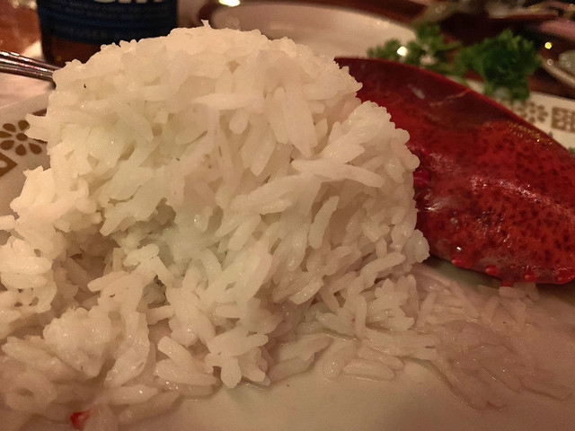 溶かしバターをつけたロブスターは尾の身もさることながら、