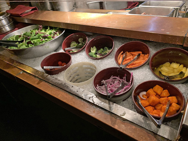 またこのお店にはサラダバーがありセルフで自由にスープや野菜、果物がいただける。