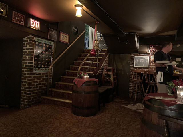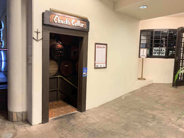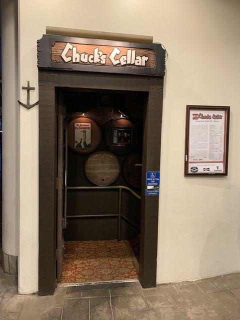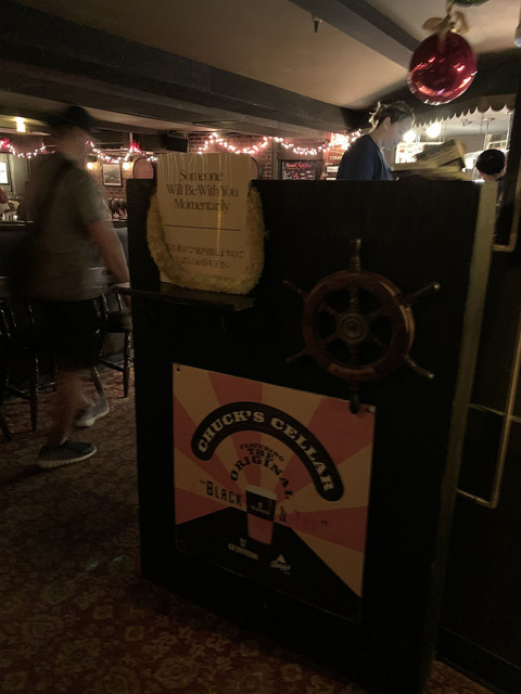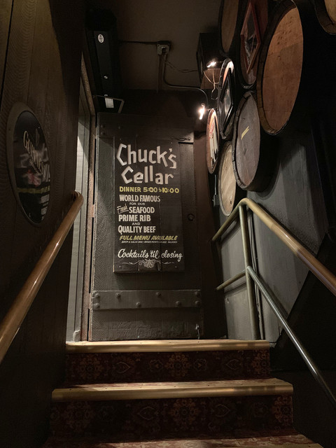 地下に続く小さい入り口ドアには小さく「Chuck's Cellar」と