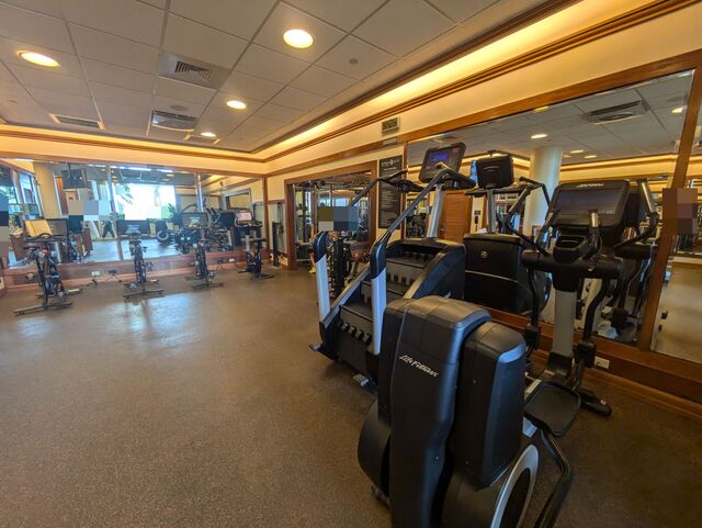 フィットネスセンターの広さならびに設備は悪くないのですが、1,230室という巨艦ホテルを賄うには心許ない。もちろんワイキキのリゾートホテルに来てまで筋トレする奴などいるのかという議論はあるのですが、それを易々とやってのけるのがアメリカ人である。
