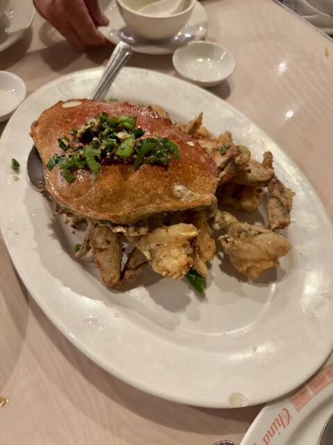 次に来たのは、ダンジネスクラブ。塩胡椒が効いてて味はかなり良いが、硬い甲羅を割るハサミも、言うまで持ってきてくれなかったので、どうやって食えばいいのか途方に暮れた。