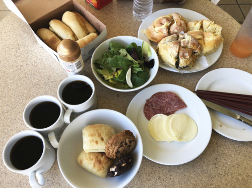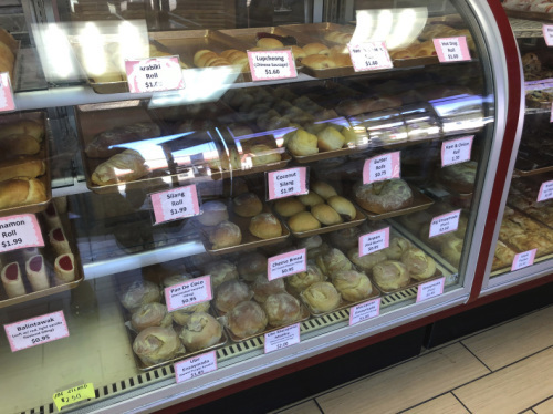 地味なルックスながら、お手頃価格の美味しそうなパンやお菓子が並んでいました。(2018年4月の店頭のお値段です。)Scone スコーンが$1.99 ミニバナナブレッド$1.50 チャイニーズポケットっていうカルツォーネみたいなパンが$1.55ブラウニーが$1.99 ハム&オニオンロール$1.70 バターロール$0.75 アンパン、チーズパン$0.95フィリッピンらしい「Hopia(ホピア)」というおやつパン?$1.40もあったのですが…。食べきれないと思って買わなかったー。買えばよかった。