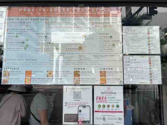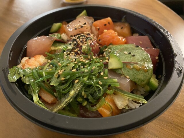注文の仕方が面白く魚の種類、ソースの種類などを選んで自分オリジナルなポキ丼を作るお店。