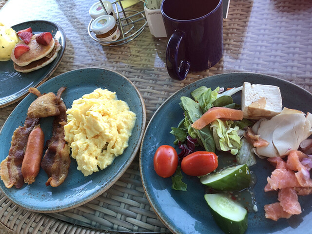 このホテルは蜂蜜が有名らしい。サラダ、ハム、ベーコン、ソーセージ、スクランブルエッグ、エッグベネディクト、オムレツ、ワッフル、パンケーキ、フルーツ、ヨーグルト等を食べた。スクランブルエッグは好物なので多めにとった。コーヒーは、席まで入れに来ていただける。