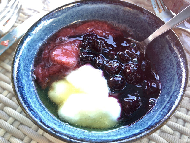 テラス席は、鳥が飛来するので、途中で席を立つ際には、皿に蓋をしてガードしなければならない。