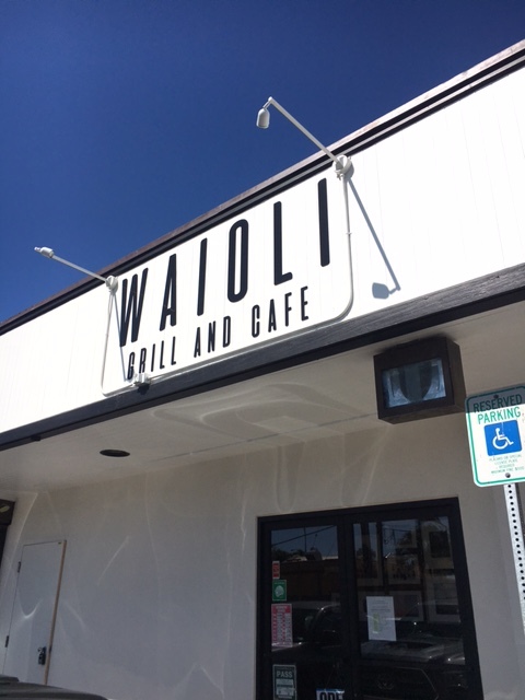 「WAIOLI GRILL AND CAFE」と白地に黒で、きりっとしたサインが出ています。
