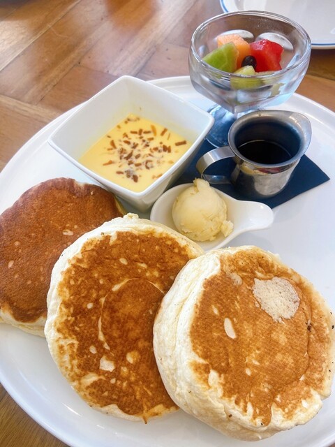 エッグベネディクトやパンケーキ、ハンバーガーなどがいただける