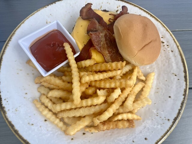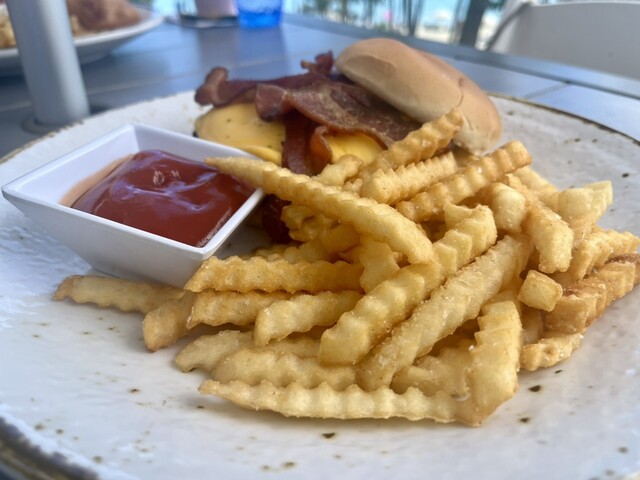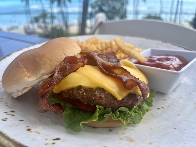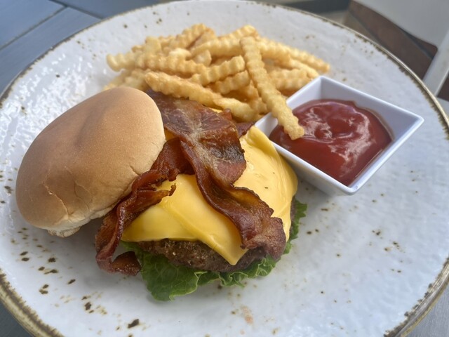 店名を冠するハンバーガーは、灼熱の太陽で焼いたようなカリッカリのベーコンが硬くて味わい深かったです(^-^;