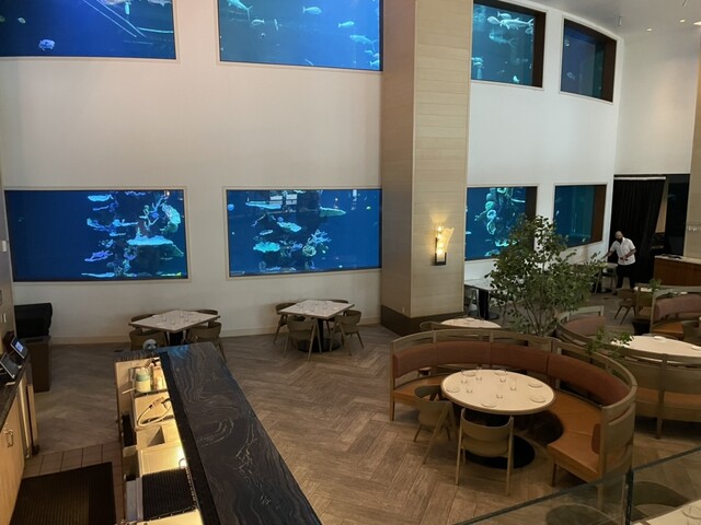 日本の有名シェフがハワイ店を出したとのことで有名なお店のようです。水族館のような水槽が店内にあり、ムーディーな雰囲気でオシャレです。