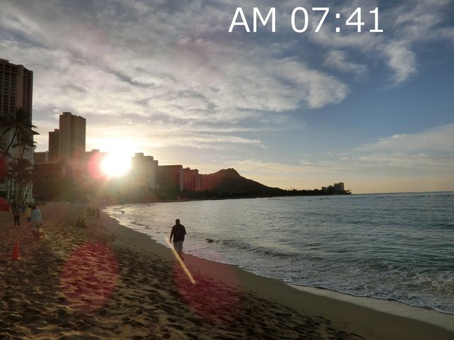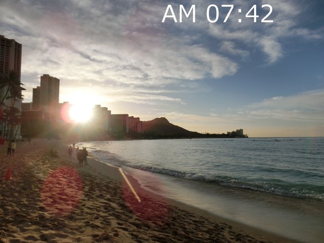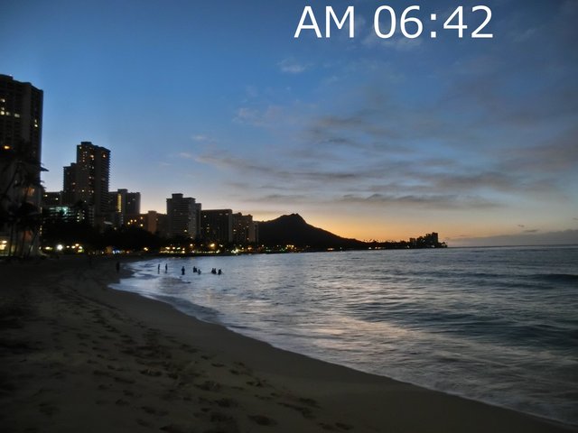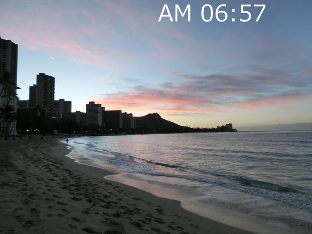 ワイキキビーチとダイヤモンドヘッドからの日の出を添えました。
