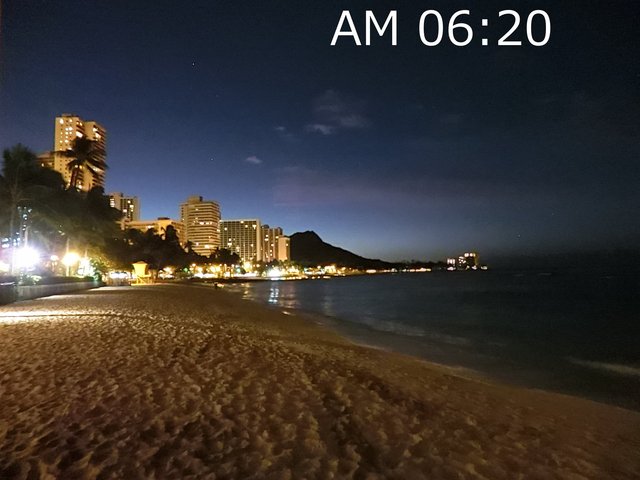 ワイキキビーチとダイヤモンドヘッドからの日の出
