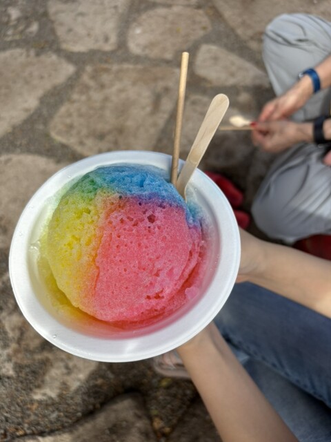 ハワイにしては若干お安いシェイブアイスでした。味やトッピングが選べますが、今回、味はレインボーで白玉とコンデンスミルクをトッピングしました。普段かき氷をあまり食べませんが、これはとても美味しかったです。