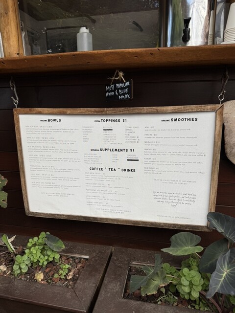 可愛い放し飼い?のニワトリを食べながらの朝のアサイーをいただきました。とてもとても有名だと思います。少食なので小さなカップでいただきましたが充分ですね。ハチミツが甘かったです。全般に甘いです。アメリカ...