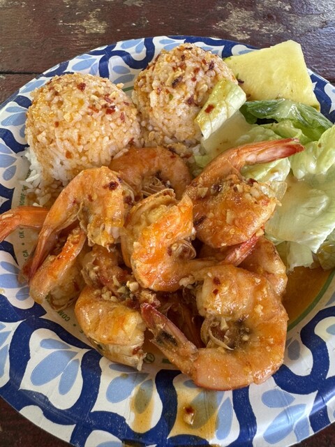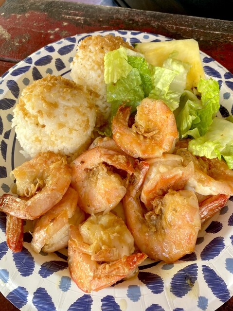 ツアーにランチが付いてまして「JENNY’S SHRIMP LUNCH WAGON 」さんでガーリックシュリンプを頂きました。
