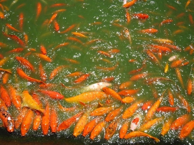 鯉の養殖場??では、エサ(¢50)を池に投げると
