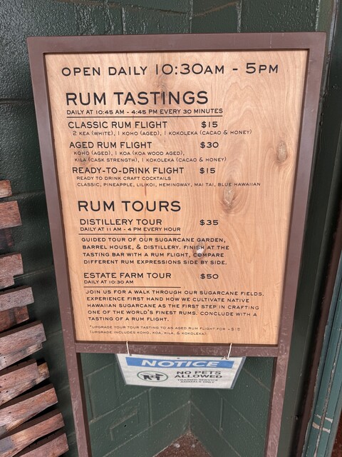 【コハナ・ラム・テイスティングツアー】予約可、https://www.kohanarum.com/tours-tasting |