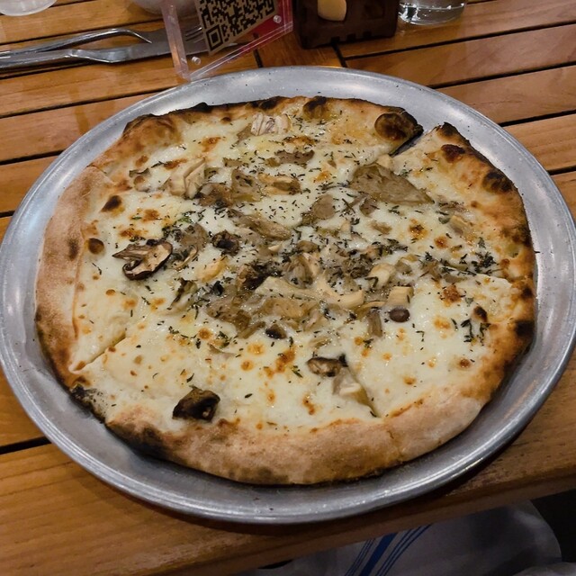 ・手投げピザ チーズ、マッシュルーム、トリュフオイル、バジル