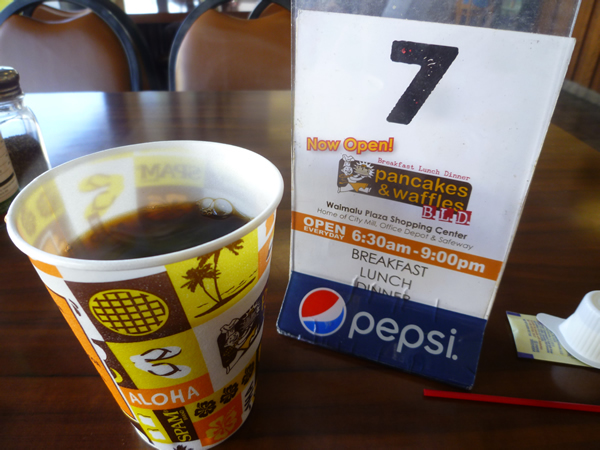 ホットコーヒー(1ドル99セント)を先に頂き、テーブルに運ばれるのをドキドキしながら待ちます…。