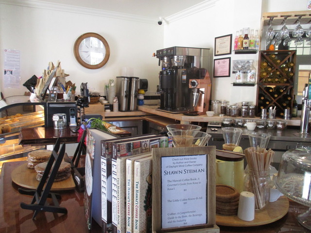 今回は、昼食後に訪れて食後のエスプレッソ(2オンス $2.5)、珈琲(1杯おかわり付き)$3やブルーベリーマフィン $3をカウンター席やテラス席で何度か楽しみましたが、ハワイにしては珈琲が本格的な好みの味でなかなか美味しかったです。