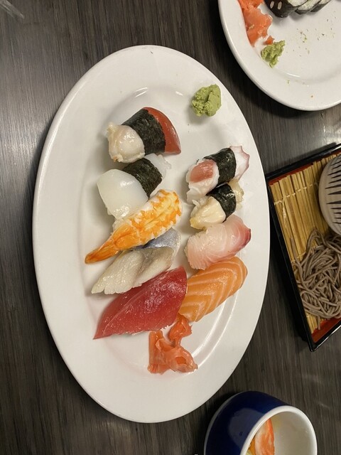 地元の人たちに大人気のようで待ってる人が絶えませんでした。店内はとても広く、普通のテーブル席の他BARや鉄板焼きコーナーやお座敷がありました。メニューはお寿司から天ぷらや鉄板焼き、麺類までありました。...