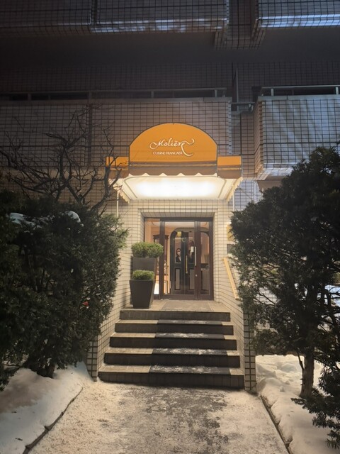 あられ舞う日、数日前熊が捕獲された円山公園近くにあるフレンチの名店モリエールに伺いました。ランチコースは蝦夷鹿か十勝牛を選択でしたので予約時に蝦夷鹿をお願いしていました。