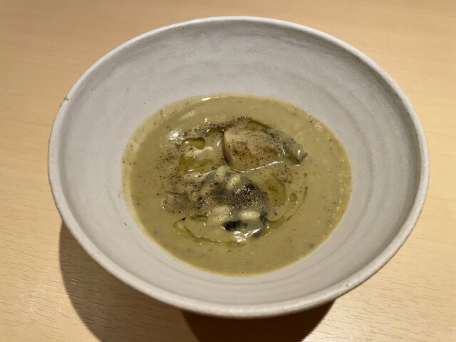 蒸し鮑と発酵椎茸 イタリアの熟成米 しょっつる ミルク 太白胡麻油 しじみ塩