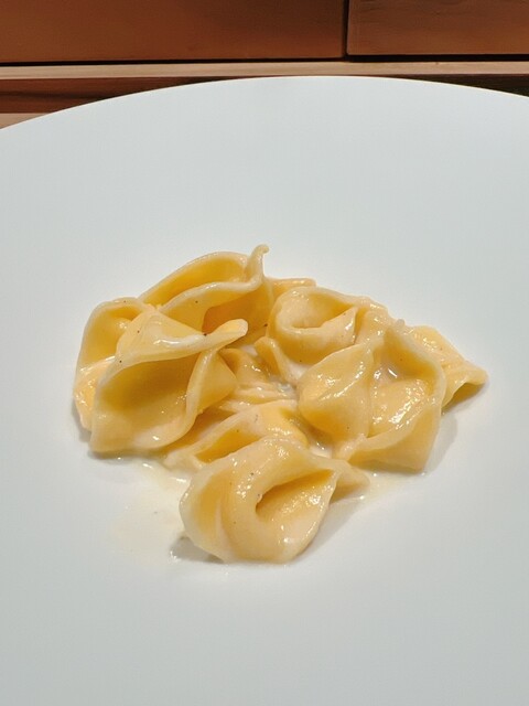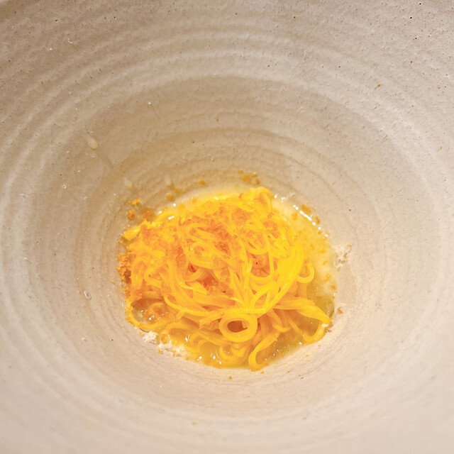 タヤリーニ、しじみの出汁、バターとカラスミ、パルミジャーノ