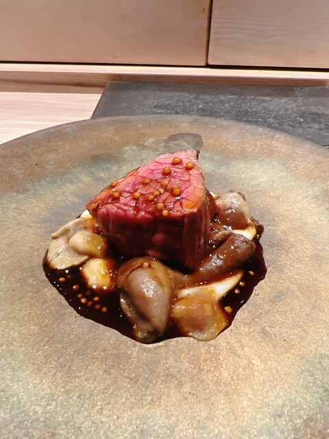 経産和牛 ポンピューレ、ガストリックソース、きのこ