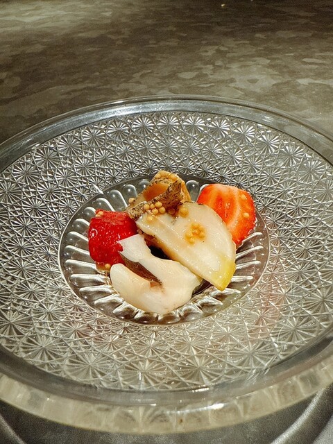 つぶ貝とマスター、あまおうのサラダ