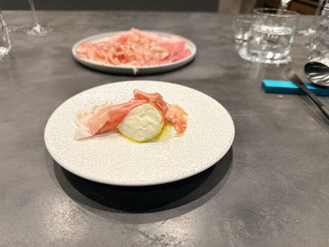 ここで目の前で作る自家製モッツァレラ&17ヶ月熟成プロシュート。