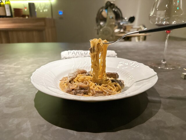 天然きのこのタヤリン、4年熟成パルミジャーノ