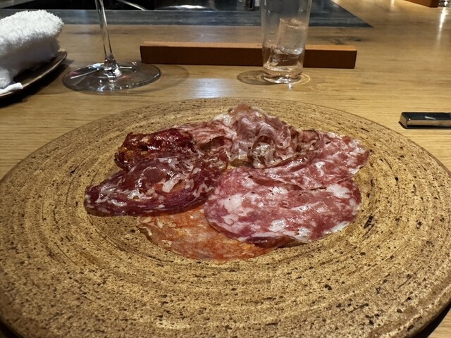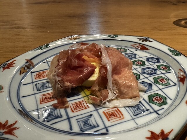 一皿目は、生ハムと作りたてのモッツァレラチーズ。