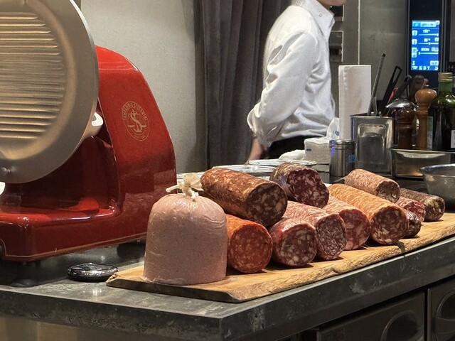 その傍らには豚や羊の生ハムがずらりと並ぶ。