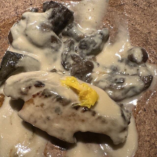利尻鮑 自家製バター 天然木の子 余市赤茄子ソース