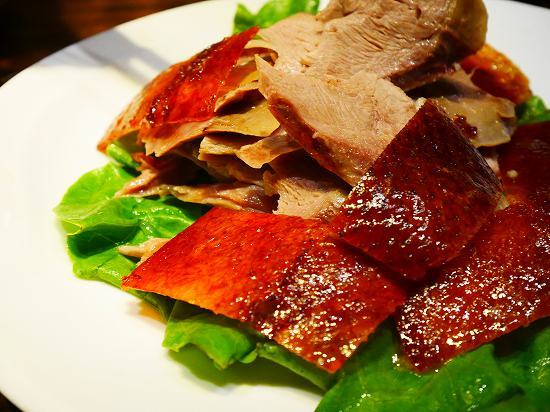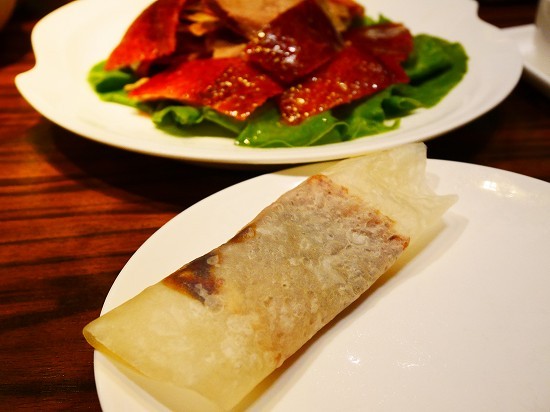 香港式の北京ダックは肉付きなんだけどココのお店は北京式で皮のみだけカット