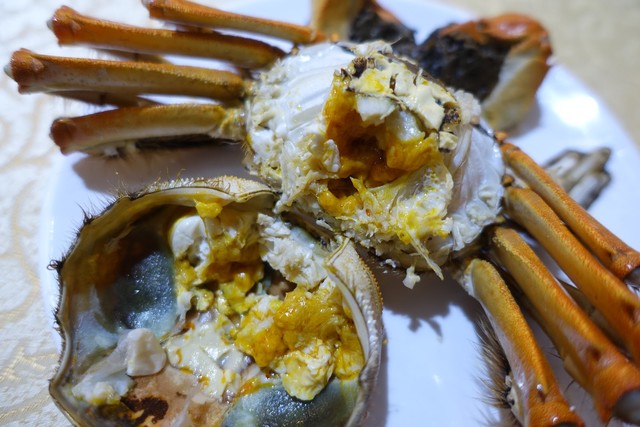 味は、、、まあ、普通の上海蟹ですね。美味しいけれどもこんなもんか、そして面倒くさいという印象。もちろんこれは当店の責任ではなく、上海蟹とはそのような食材である。どうしてみんなあんなに有難がって食べるんだろう。タラバガニのほうが美味しくない?