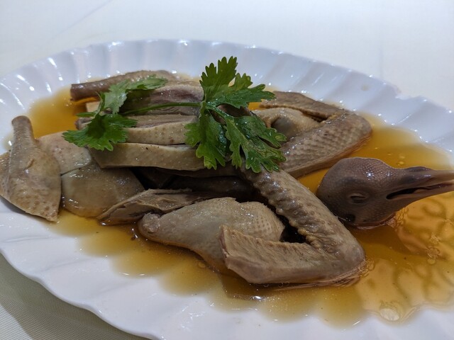 一番人気的に書かれていたハトなのですが、うーん、あんまり美味しくありません。フランス料理愛好家として私は鳩を日本人にしてはかなり食べるほうなのですが、私の知る鳩味とはかけ離れたものでした。ワインソースとの表記がありましたが、これは紹興酒だろうという意見もある。