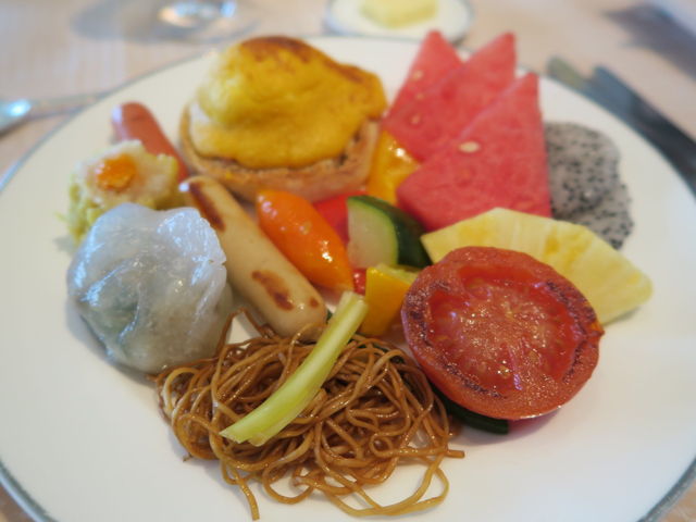 泊まっていないお客でも食べられる、モーニングブッフェ($350=約5250円)を!