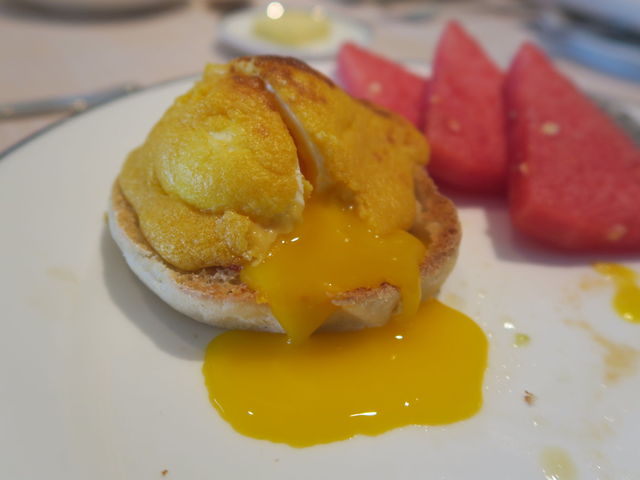 エッグベネディクトは、ナイフを入れるとトロッと卵黄が流れ出し、デブューティフル!