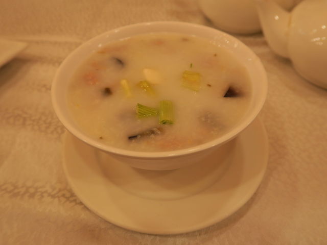 〆炭水化物はピータン粥にしたところ、ピータンと鶏肉の味わい深い美味しさなので…