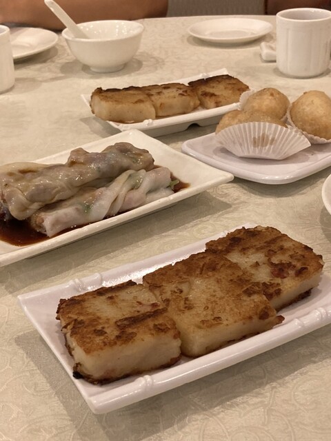 大きな丸テーブルを大人数で囲みます。飲茶は多くの方で少しづつたくさんの種類の料理をいただくのが醍醐味。お目当ては、日本ではあまり食べることができない「大根餅」「腸粉」。これが美味いんです。