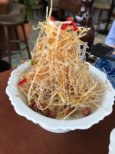 サツマイモ的な芋の千切りを揚げて、蜂蜜がけ。かなり甘い・・・・