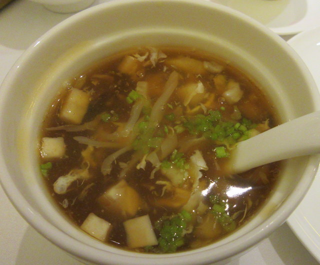 お次はスープ。ナズナ、魚の浮袋、豆腐の入ったとろみのあるスープ。旨味がしみわたる一品。香港の中華の強みはこの種のスープにあるのかもしれません。これが千円しないのは驚き。