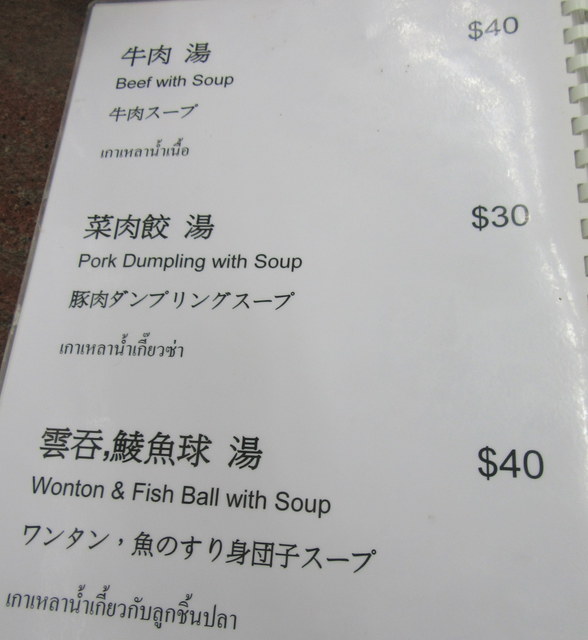 初めて入りますから、オーソドックスなところで雲吞と鮮牛肉。ただ連れはそれほど香港のごわごわした麺を好まないので、米線(ビーフン)と河(平打ちきしめん)にしました。