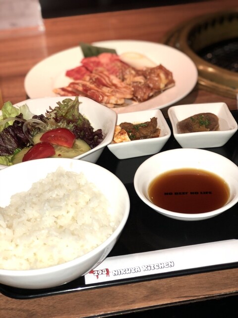 牛、豚、鶏、と入ってサラダもスープもおかずもついてお得でした。